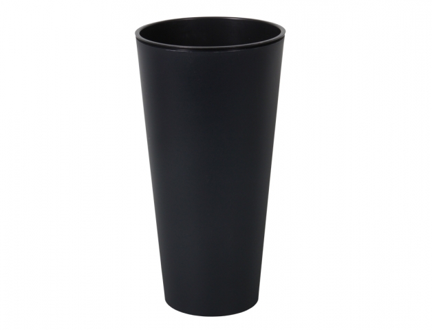 Plastový matný antracitový vysoký obal s černou vložkou určený pro květináče s rostlinami vhodnými do interiéru. Průměr obalu je 25 cm a výška 48 cm. prečítať celé