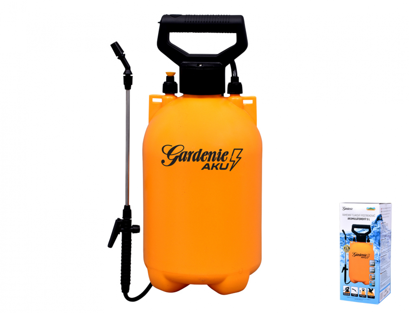 Plastový, tlakový postřikovač na rameno. Na elektrický pohon, který se ovládá tlačítkem z hlavy postřikovače. Ve stejném místě je také vstup na usb, přes které se lithiový akumulátor dobíjí. Doba dobíjení: 150 min. Doba práce akumulátoru: 60 min. Má 36 cm kovový nástavec s plastovou tryskou. Kapacita nádrže: 5 l. Barva: žlutá.