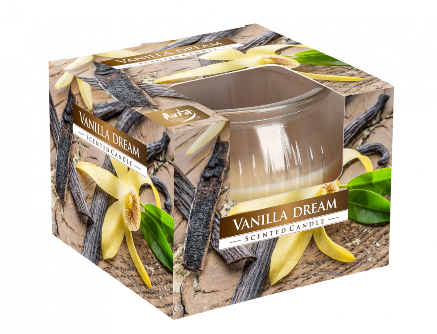 Vonná svíčka ve skle. Vůně: vanilka. Má certifikát kvality RAL, který garantuje bezpečnost a kvalitu použitých materiálů. Skleněný obal je zaoblený a zdobený a v kombinaci s jasnou barvou vosku zútulní každý prostor. Balení: 1ks v dárkové krabičce. Doba hoření: 18 hodin. Hmotnost: 80g. Rozměr: průměr 7,7cm, výška: 5,9cm. Barva: žlutá.