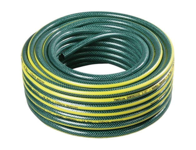 Hadice Gardenie je 1/2 coulová hadice vhodná k použití na zahradě a v zemědělství. Délka: 25 m. Barva: tmavě zelená se žlutým pruhem. prečítať celé