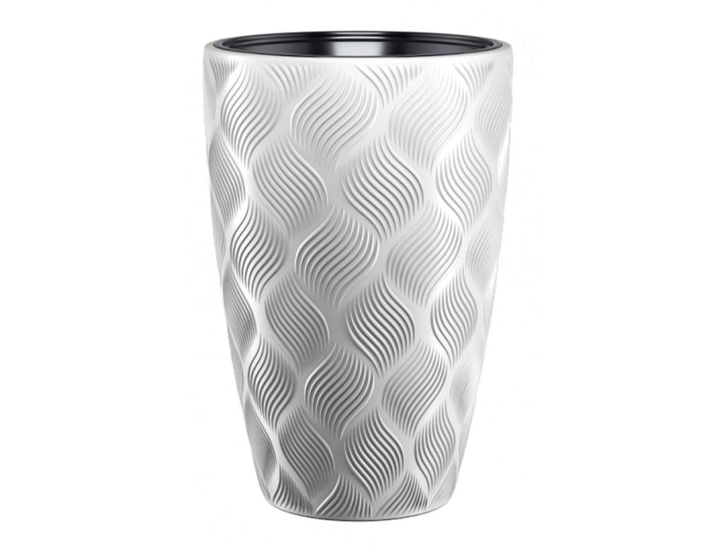 Plastový obal na květník, vysoký, v elegantním designu s 3D efektem a dekorem pramenů. Kruhového půdorysu. S vnitřní vložkou. Je odolný vůči mrazu i vůči UV záření, lze jej tedy umístit i do venkovních prostor. Průměr: 39 cm, výška: 58 cm. Barva: bílá. prečítať celé