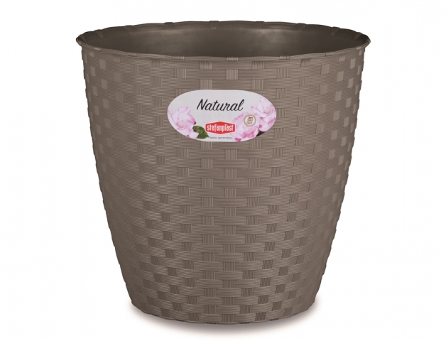Plastový obal s rattanovým designem je vhodný pro umístění do interiéru, do zimních zahrad či na balkón. Barva: hnědo šedá. Rozměry: d 29 x 27 cm. prečítať celé