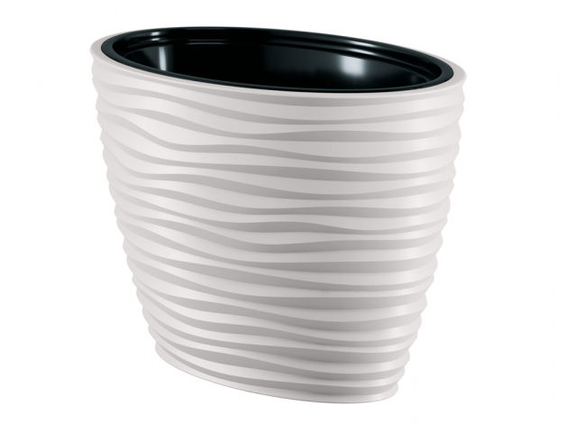 Moderní plastový obal ve tvaru elipsy s jemnými vlnkami po celém obvodu. Součástí je vnitřní vložka. Je mrazuvzorný a odolný vůči UV záření. Barva: bílá. Rozměry: 60 x 40 cm, výška: 40 cm. prečítať celé