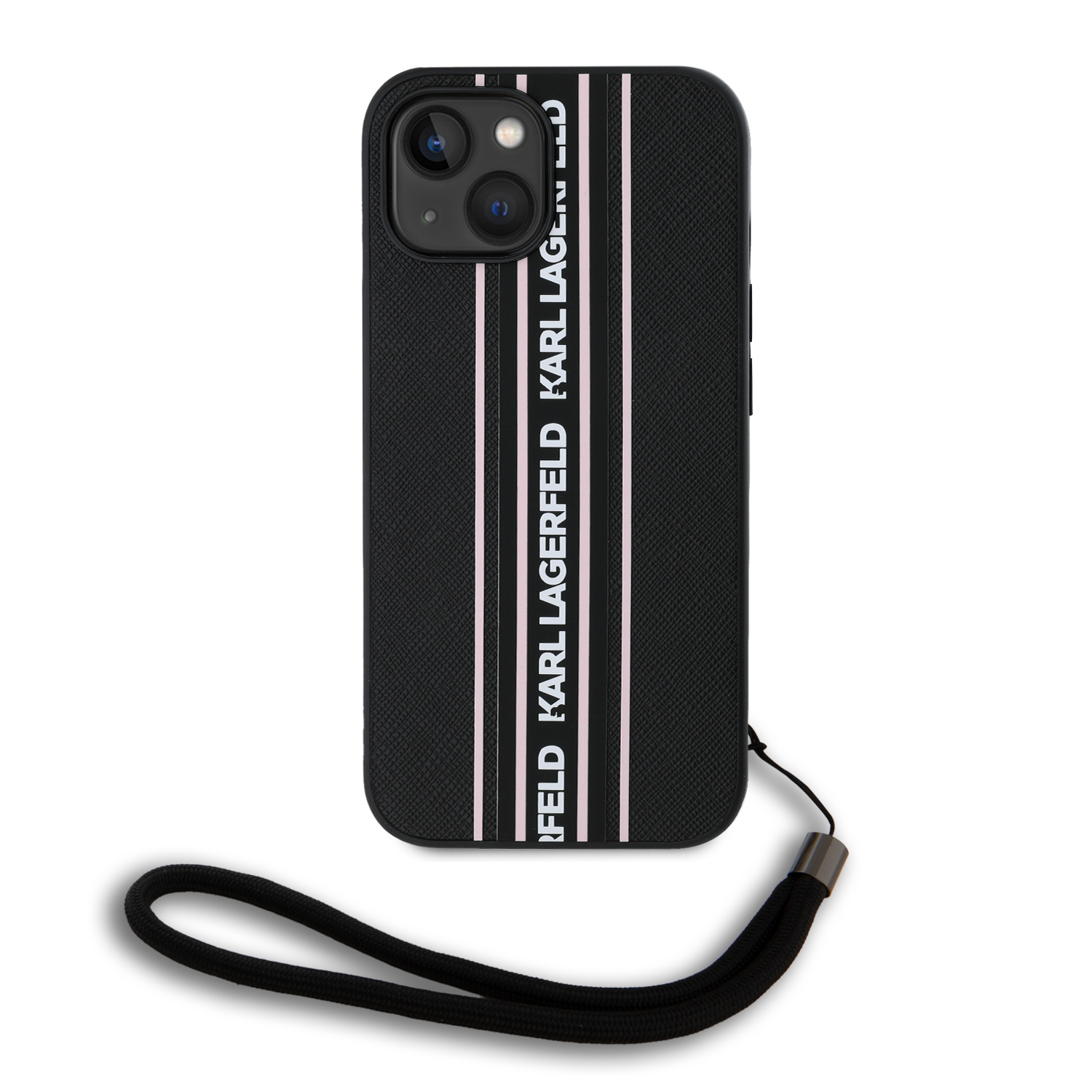 Karl Lagerfeld PU Saffiano Athleisure Stripe and Strap Zadní Kryt pro iPhone 15 Pink