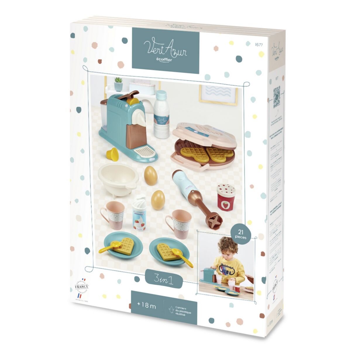 Sada 3 v 1 na přípravu snídaně obsahuje 3 spotřebiče - kávovar, vaflovač a tyčový mixér. Součástí sady jsou doplňky: 4 vafle, miska, 2 vejce, 2 kapsle do kávovaru, 2 šálky, láhev mléka, plechovka šlehačky a sklenice džemu. Rozměry výrobku: 22,5 x 17 x 14 cm. prečítať celé
