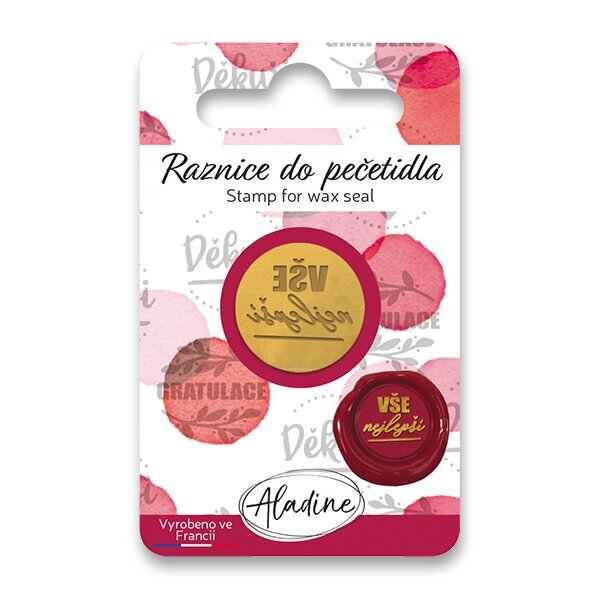Kovové pečetidlo Aladine s textem Vše nejlepší je určené k výrobě voskových pečetí,,Průměr pečetidla: 2 cm prečítať celé