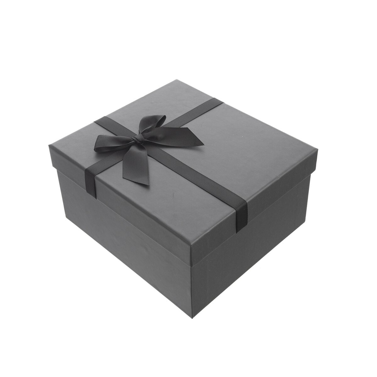 Dárková barevná krabička s víkem se stuhou nabízí velmi rychlé, ale velice pěkné zabalení dárku. Stačí zvolit správnou velikost, dárek jen uložit, přiklopit víčko a je hotovo. Krabička je pevná, lze ji pak opakovaně použít buď na další dárek nebo na uložení drobností. Materiál: kraftový papír, PES. Šedá. Rozměry: 21x18,5x10 cm.