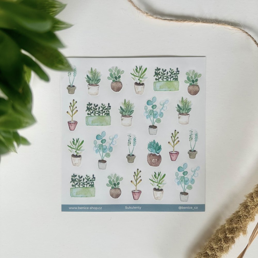 Samolepky - Sukulenty obsahují:1 arch samolepek Samolepky mají průměr cca 2,5 cm (1 kus)Originální autorský designSamolepky Sukulenty ilustrovala česká výtvarnice Bára z Nikolajky. Ilustrace byly vytvořeny technikou akvarelu.Design výrobků Be Nice vytváříme delší dobu a než se dostanou k vám,...
