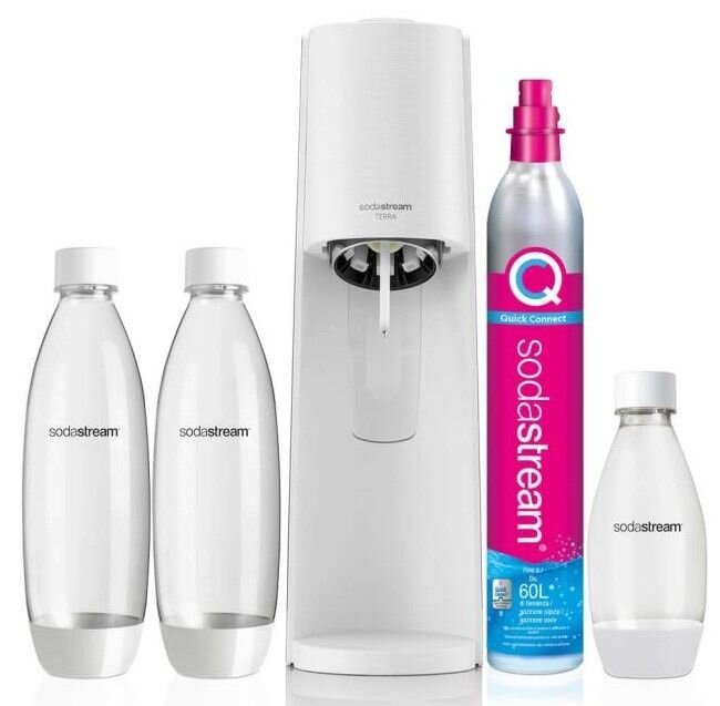 SodaStream Terra Megapack v elegantnej bielej farbe je vašou vstupenkou do sveta osvieženia a zdravého životného štýlu bez potreby neustáleho nosenia ťažkých fliaš s vodou z obchodu. Vytvorte si doma svoju obľúbenú perlivú vodu ľahko, rýchlo a ekologicky.