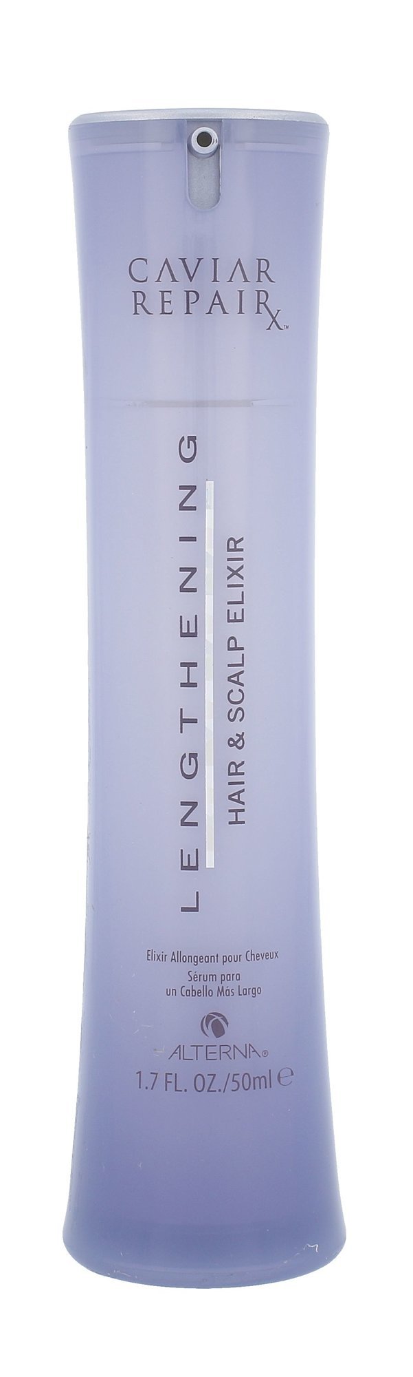 Vlasový elixír Alterna Caviar Repairx Lengthening Hair & Scalp Elixir vyživuje vlasy a vlasovou pokožku. Je speciálně určen pro dlouhé vlasy. Vlasy budou hydratované, jemné a lesklé. Hydratuje vlasová vlákna tak, aby nedocházelo k jejich lámání.