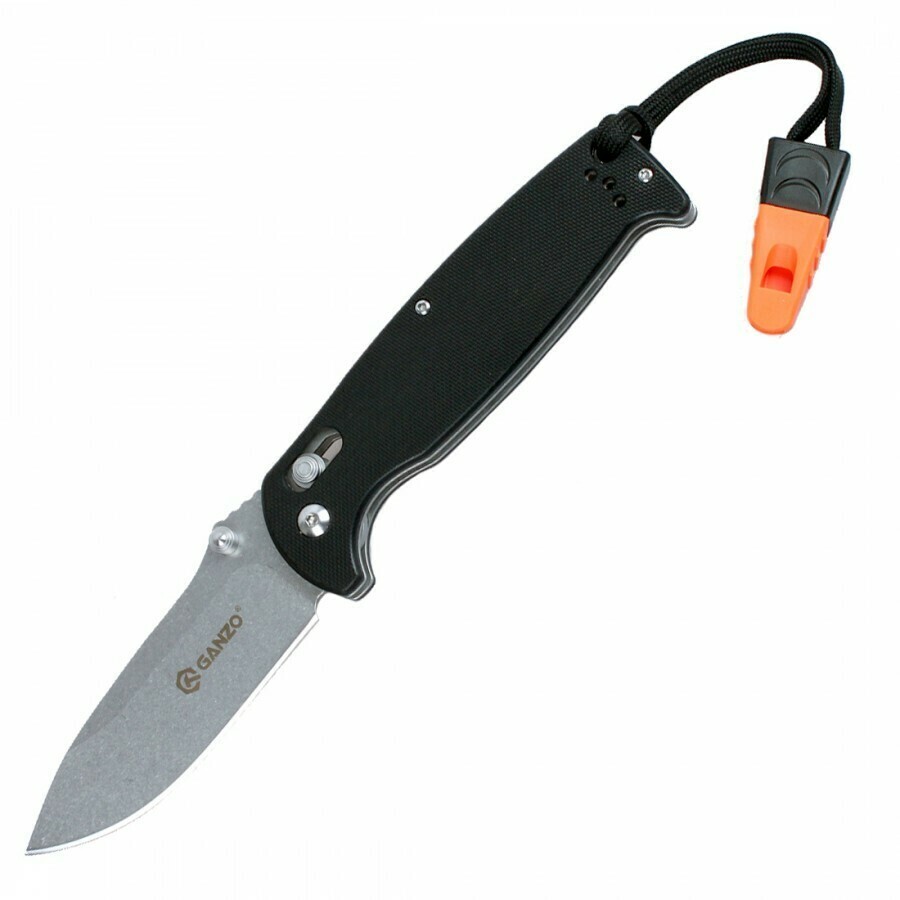 Zatvárací vreckový nôž Ganzo Knife G7412-BK-WS určený pre outdoorové aktivity vďaka zabudovanej píšťalke, ale aj na každodenné (EDC) nosenie.