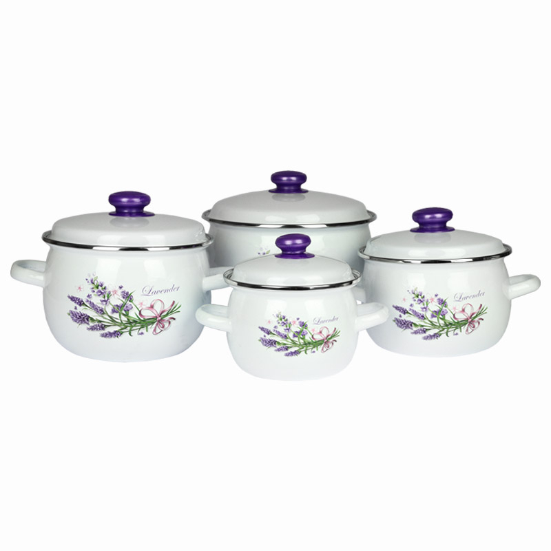 EMALIA RYBNIK 8-dílná sada smaltovaných hrnců motiv Levandule