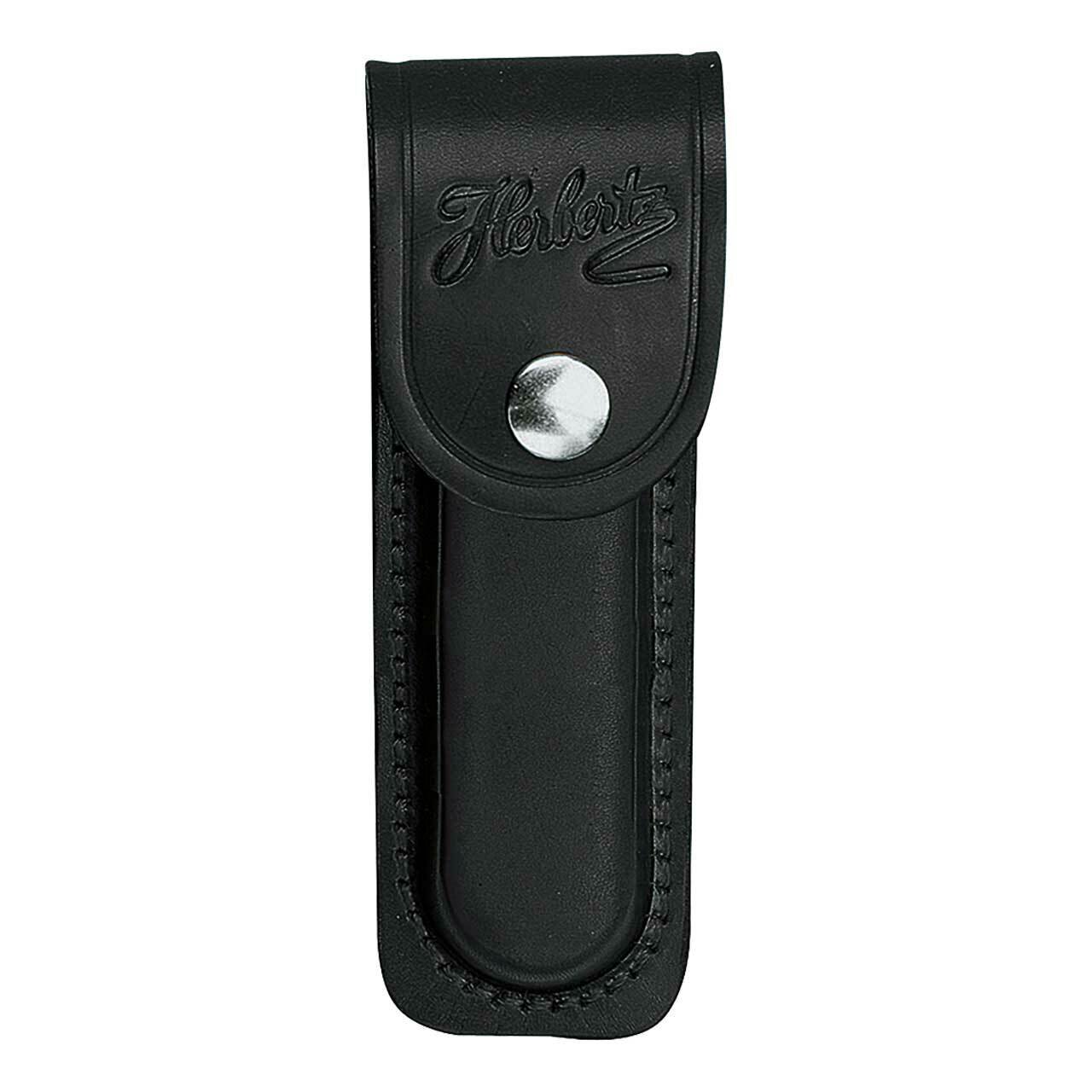 Štíhle čierne kožené puzdro Herbertz 2654110 pre nože s dĺžkou rukoväte 11 cm. Zapína sa na gombík. S robustným pútkom na opasok. Dĺžka puzdra 13 cm prečítať celé