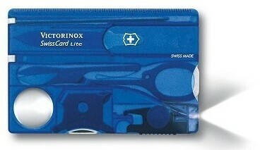 Imitácia platobnej karty s funkciami vreckového noža vo svojom vnútri s LED. Modrá farba.Obsahuje 13 funkcií: 1. nôž na otváranie listov (čepeľ) 2. nožnice 3. nerezový špendlík 4. guľôčkové pero 5. pinzeta 6. lupa 7. skrutkovač 3 mm 8. skrutkovač 5 mm 9. krížový skrutkovač 00-010....