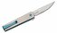 Rukoväť je z textúrovaného hliníka s modrými vložkami, s obojstrannou sponou na vrecká.