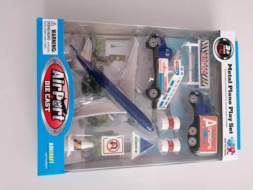 Kovové letadlo s doplňky obsahuje letištní vozidla, značení prečítať celé