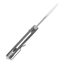 S čepeľou s hladkou hranou z ocele 154CM so saténovým povrchom, otvára sa guľôčkovými ložiskami cez vyklápač Flipper a zaisťuje ju tlačidlový zámok Button Lock.