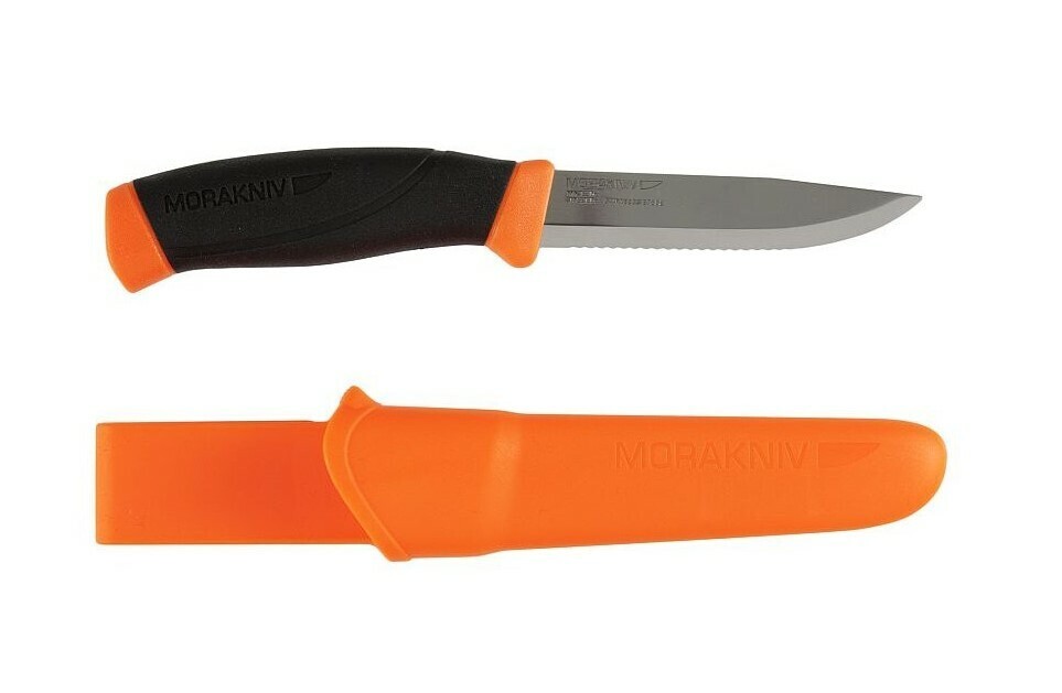 Morakniv 11829 Companion F Serrated všestranný nôž 10,4 cm, oranžovo-čierna, plast, guma, puzdro