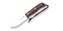 Má pevnú čepeľ s hladkou hranou z nerezovej ocele 14C28N, prechádza celým nožom (full-tang).