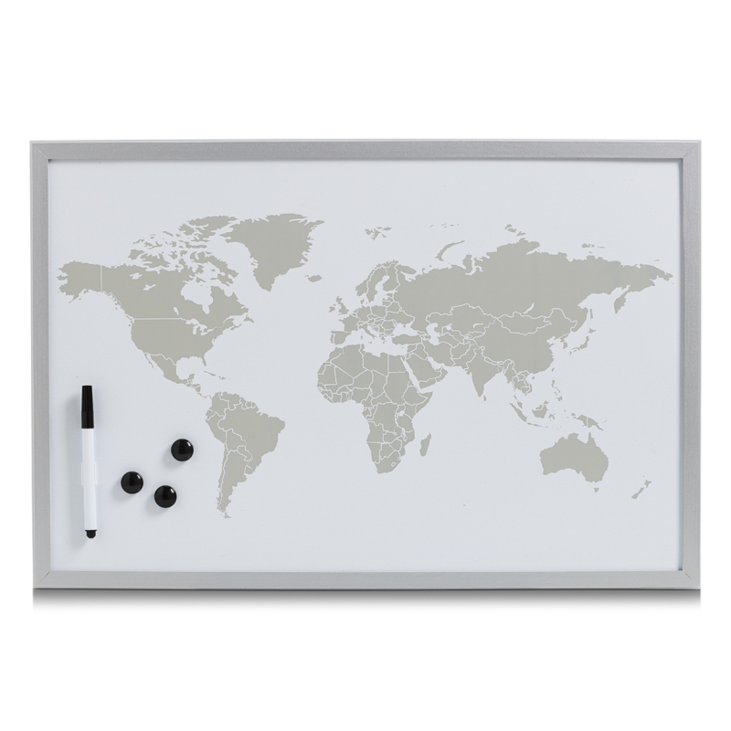ZELLER Magnetická nástěnka mapa světa, šedá, bílá 60x40cm