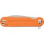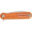 Rukoväť je z odolného materiálu G10 oranžovej farby, s dierkou na šnúrku a sponou na vrecká.