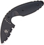 Má čepeľ so zúbkovanou hranou z japonskej ocele AUS-8 s čiernou antireflexnou vrstvou, prechádza celým nožom (full-tang).