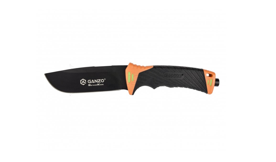 Ganzo Knife G8012-OR nôž do prírody 11,5 cm, čierno-oranžová, ABS, guma, plastové puzdro