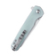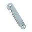 Rukoväť je vyrobená z odolného materiálu G10 transparentnej zelenej farby. Na konci rukoväte sa nachádza otvor na šnúrku. Nôž je vybavený sponou pre nosenie vo vrecku.