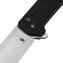 S čepeľou s hladkou hranou v tvare sekáčika z ocele 9Cr18MoV so saténovým povrchom, otvára sa guľôčkovými ložiskami cez vyklápač Flipper a zaisťuje ju zámok tlačidiel Button Lock.