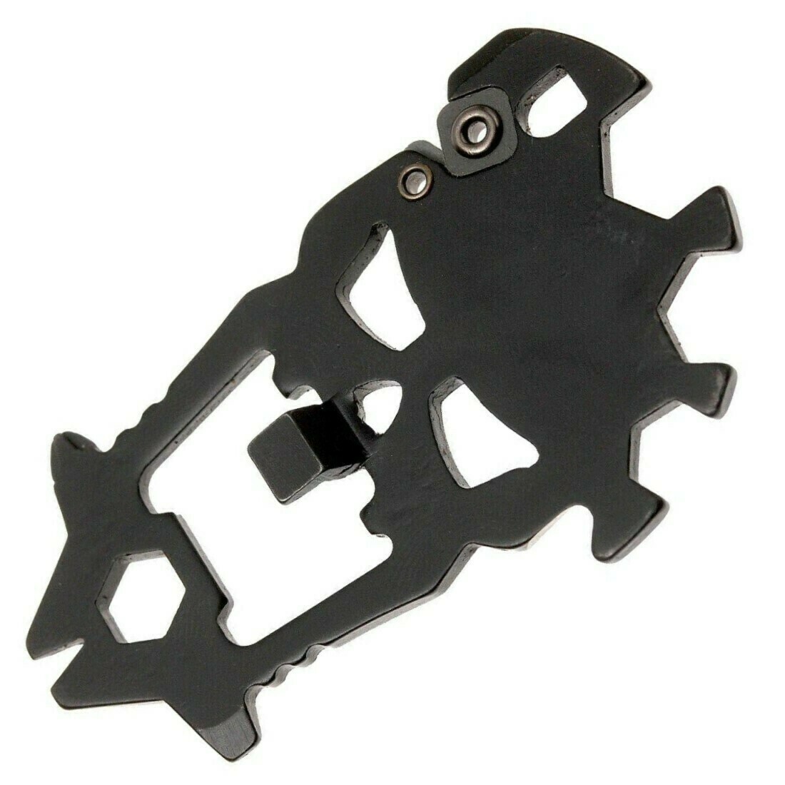 Obsahuje 12 nástrojov konsolidovaných do veľkosti držiaka na kľúče: drážkovací skrutkovač veľký / malý, krížový skrutkovač Phillips, prybar s sťahovákom na nechty, otvárač na fľaše , 3 šesťhranné kľúče (1/4 ", 5/16", 3/8 "), brúska na nože, 1/4" bitová zásuvka, fréza na opasok a dierka na šnúrky.