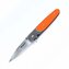 Rukoväť je z kombinácie ocele so saténovým povrchom a G10 oranžovej farby, so zdrsneným povrchom pre pohodlné uchopenie. So sponou na vrecká.