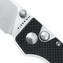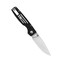 S čepeľou s hladkou hranou z ocele 154CM so saténovým povrchom, otvára sa palcovým kolíkom a zaisťuje ju zámok tlačidiel Button Lock.