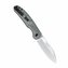 Čepeľ vyrobená z kvalitnej ocele 154CM so saténovým povrchom, sa otvára otvorom v čepeli a v otvorenej pozícii ju drží poistka Button lock.