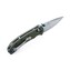 Rukoväť je z odolného materiálu G10 zelenej farby, s otvorom na šnúrku a sponou na vrecká.