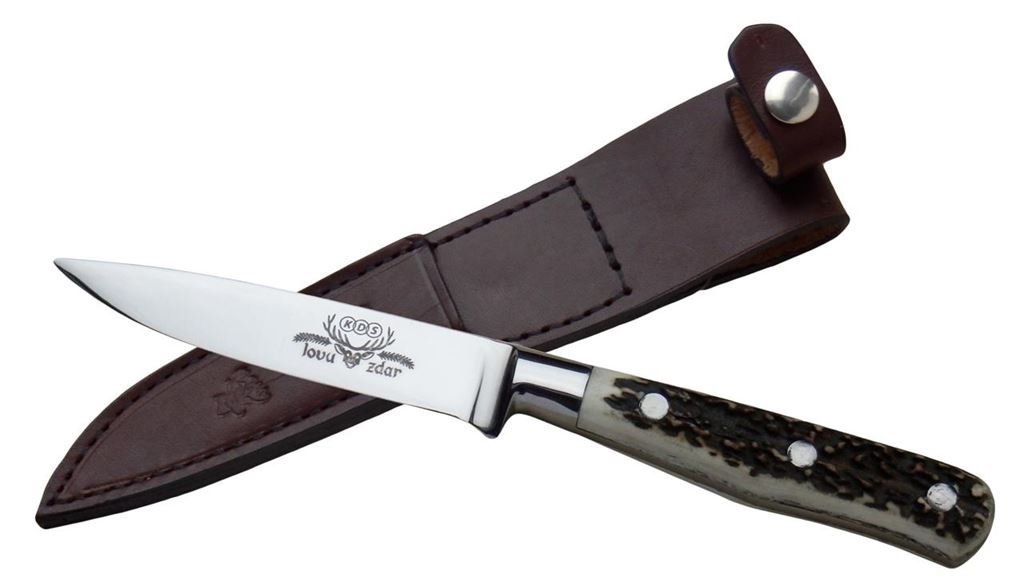 Tradiční lovecký nůž s čepelí z kvalitní nerezové oceli a střenkami z pravého parohu. prečítať celé