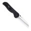 Má čepeľ s hladkou hranou z ocele 9Cr18MoV so saténovým povrchom, otvára sa palcovým kolíkom a zaisťuje ju poistka Linerlock.