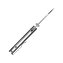 S čepeľou s hladkou hranou z ocele 154CM so saténovým povrchom, otvára sa palcovým kolíkom a zaisťuje ju zámok tlačidiel Button Lock.
