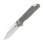 S čepeľou s hladkou hranou z ocele 154CM so saténovým povrchom, otvára sa guľôčkovými ložiskami cez vyklápač Flipper a zaisťuje ju tlačidlový zámok Button Lock.