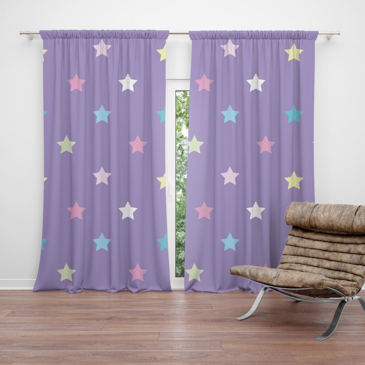 Závěs Hvězdy na fialové: 2ks 140x250cm