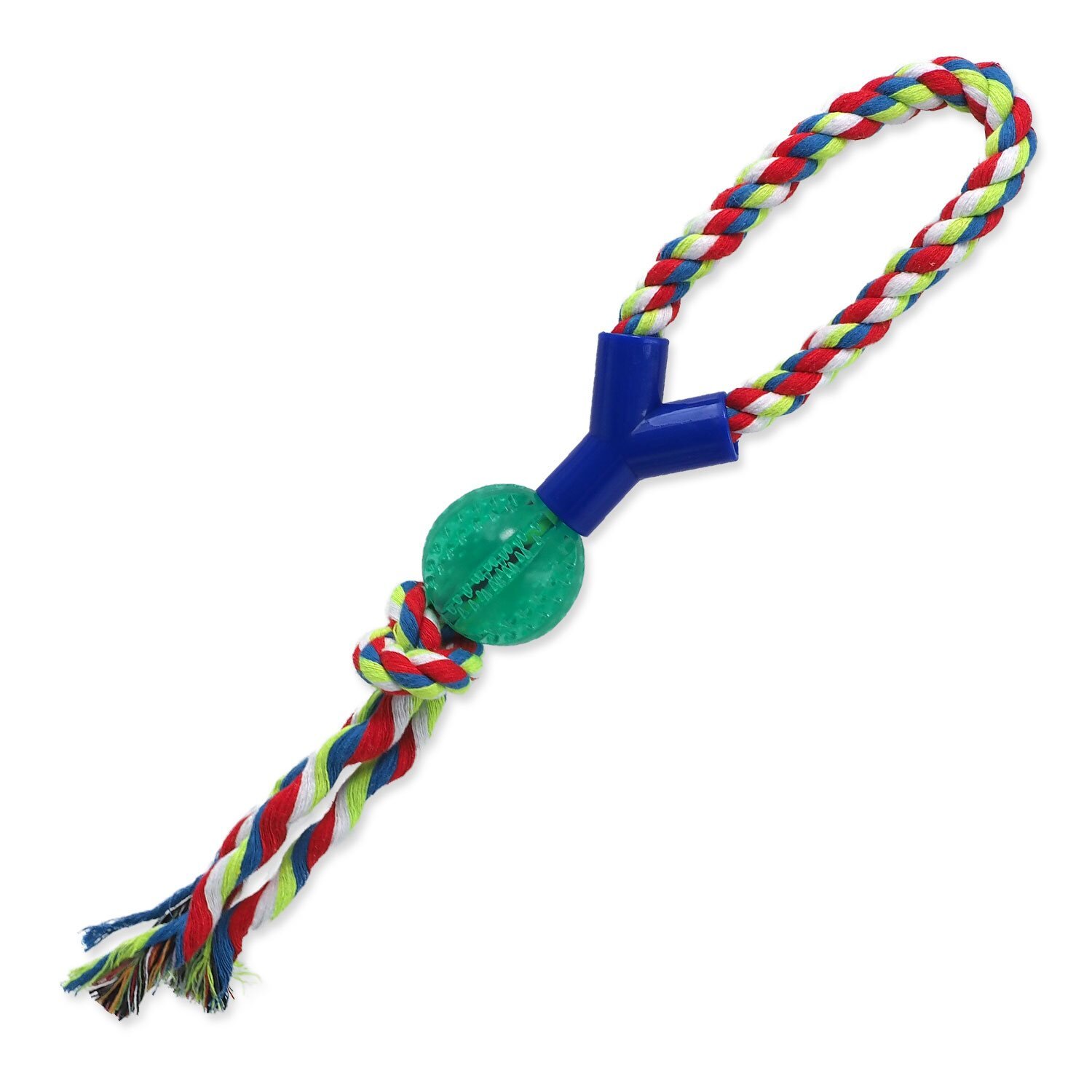 Hračka Dog Fantasy DENTAL MINT míček házecí s provazem Y zelený 5x38cm