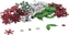 Dekorace 6 druhů - Vánoce - barva: červená, zelená, stříbrná.