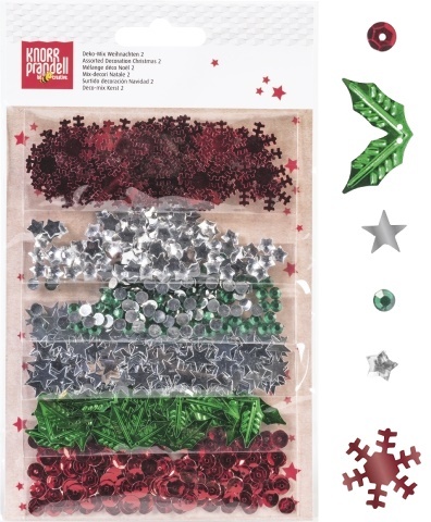 Dekorace 6 druhů jednotlivě balených v opakovaně uzavíratelných sáčcích. Vhodné pro dekorační zdobení, výrobu přání, dětskou tvorbu. Obsah: sněhové vločky, kamínky, fóliové hvězdičky, jmelí, flitry. prečítať celé