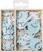 Dřevěné ozdoby vhodné pro dekorační zdobení, výrobu přání, dětskou tvorbu. Baleno v dřevěné krabičce 10,5 x 10,5cm. Barvy: světle modrá, tyrkysová, světle šedá. prečítať celé