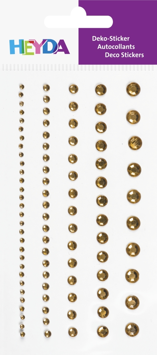 Dekorační kamínek štrasový samolepicí 95ks - zlatý, 5 velikostí, průměr 2mm až 6 mm
