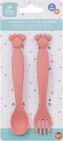 sada složená z lžičky a vidličky, aby se děti mohly díky zaoblenému tvaru naučit používat příbory při jídle zábavným a bezpečným způsobem