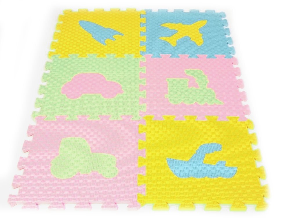 Pěnový koberec s vyjímatelnými dílky dopravních prostředků v pastelových barvách je omyvatelný, tlumí hluk a izoluje od chladu. Podložka je proto ideální jako hrací koberec nejen do dětských pokojů, ale všude tam, kde si hrají děti a plovoucí podlaha, dlažba nebo linoleum jsou příliš chladné....