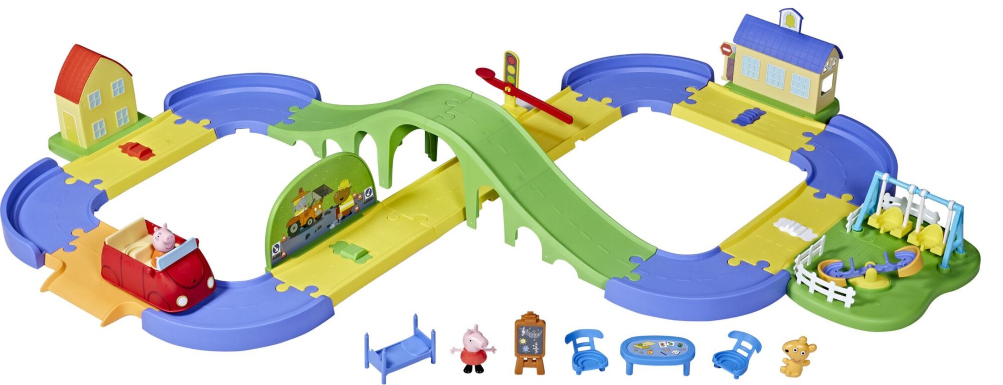 Je čas navštívit Peppino rodné městečko s touto hrací sadou. díky nastavitelné dráze ji lze uspořádat několika různými způsoby, takže cesta kolem městečka může vypadat různě součástí je maminčino červené autíčko a odnímatelná figurka Peppy prasátka projedou kolem Peppy domečku,...
