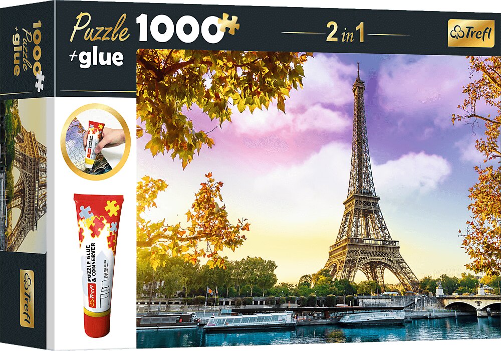 TREFL Sada 2v1 puzzle Paříž, Francie 1000 dílků s lepidlem