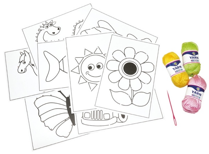 Táto sada obsahuje 8 šijacích kariet s rôznymi motívmi, ktoré vám umožnia vytvárať originálne vzory. Súčasťou je tiež ihla a 10 návinov akrylovej priadze v pestrých farbách - zelenej, ružovej a žltej - ideálnych pre jemné a farebné vyšívanie. Každá priadza má hmotnosť 10 g a dĺžku 36 m, čo vám zaručí dostatok materiálu pre vaše projekty.