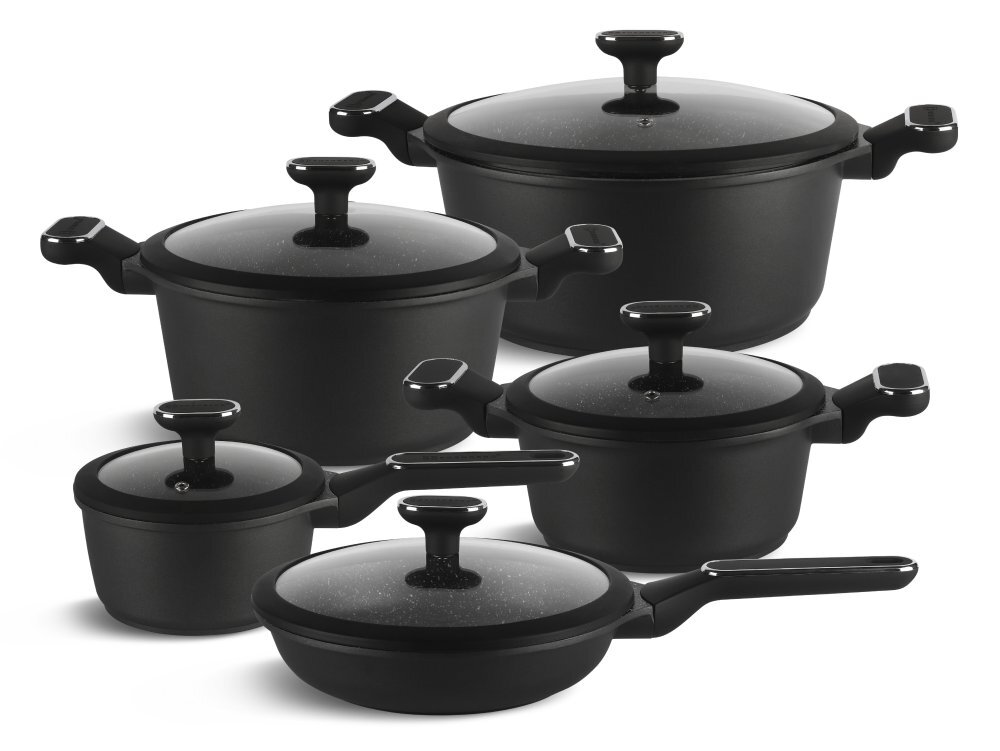 Tato sada hrnců a pánví nabízí ideální kombinaci kvality, praktičnosti a moderního designu, který se hodí do každé kuchyně. S odolným a lehkým designem, nepřilnavým povrchem a širokou kompatibilitou je tato sada perfektní volbou pro každodenní vaření.